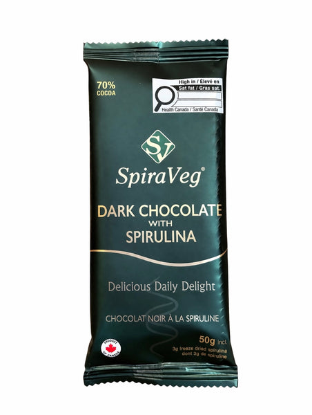 Rich dark and creamy milk chocolate, each infused with 3g of freeze-dried spirulina. See the green goodness inside!
